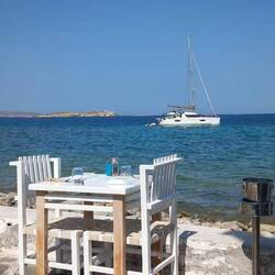 Headed off the boat and just made sunset at the windmills. Nice atmosphere in town at Partheniscafe.