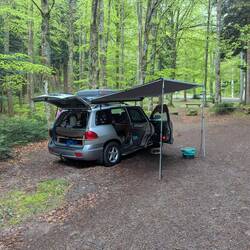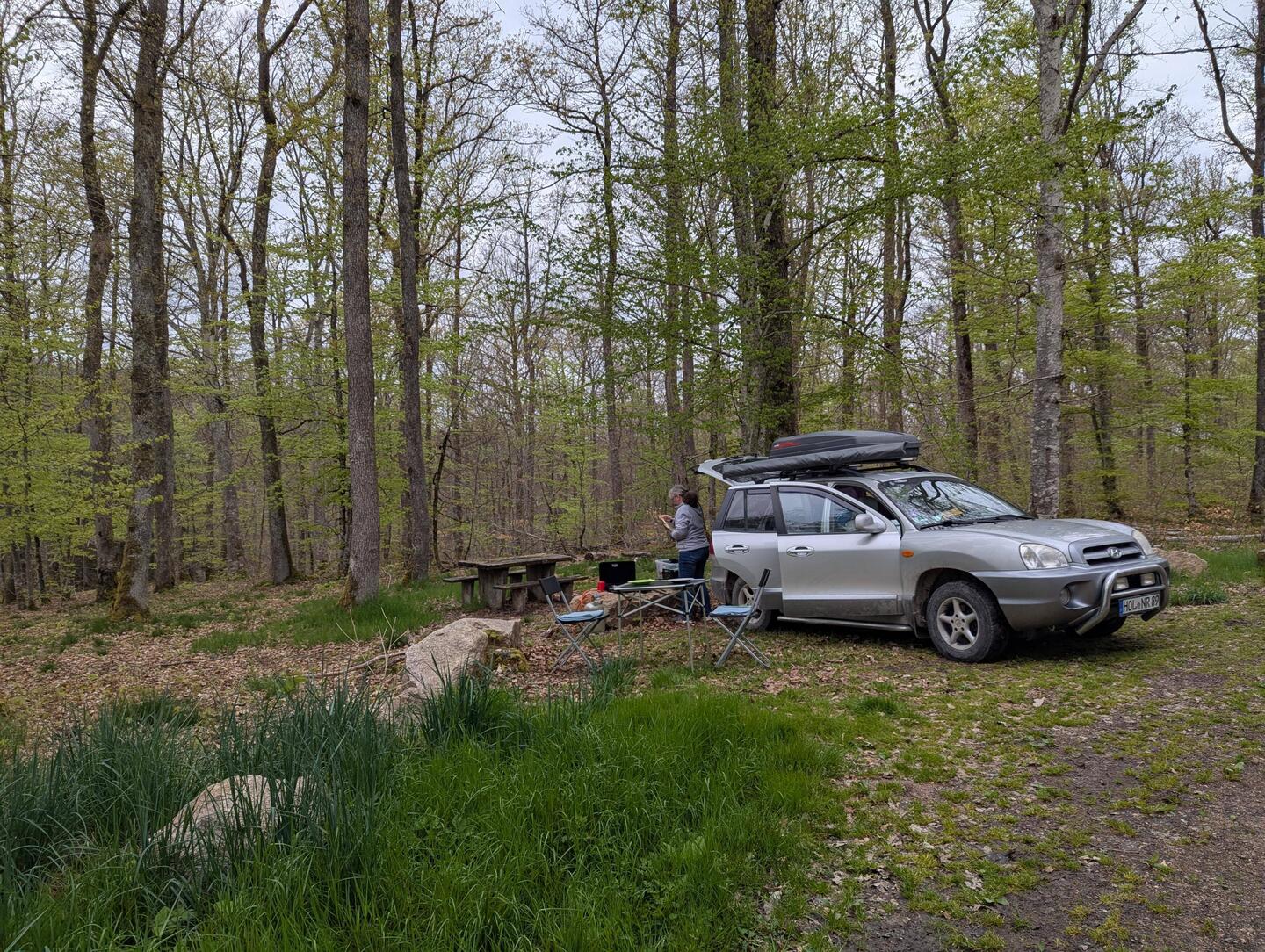 Schöner Schlafplatz mitten im Wald, morgens leider Regen, aber was soll's😊
