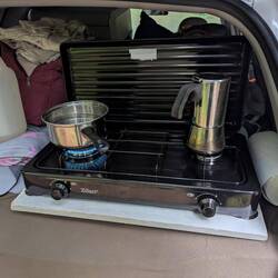 Als alles aufgebaut war, der erste Schreck, neuer Herd ohne Anzünder, wo ist das Feuerzeug🤣🤣