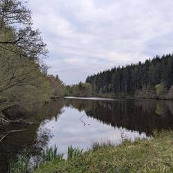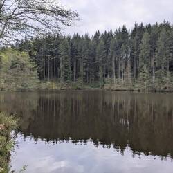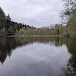 Kleiner Wanderparkplatz, ca 250 m vom Teich entfernt. Schön ruhig😊 und mit Feld (Stein) Küche