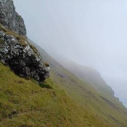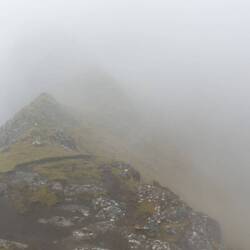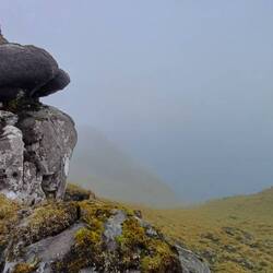 Nun soll es doch zurück gehen, die Kräfte sind fast aufgebraucht, Regen setzt ein und eine steife Brise. Die letzte Erhebung wollte ich noch mitnehmen, gefühlt nah am Abgrund (aber mit gutenWeiterlesen