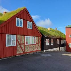 Auf geht es zum ältesten Haus in Miðvágur auf der Vágar Insel. Die Sonne lacht sogar, perfekt um eigentlich die Drohne zu verwenden, aber es ist direkt in der Einflugschneise des Flughafens.