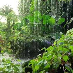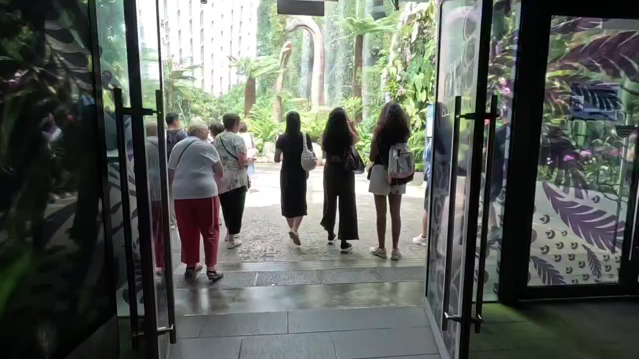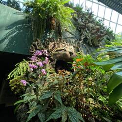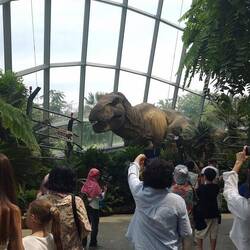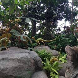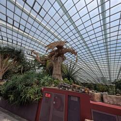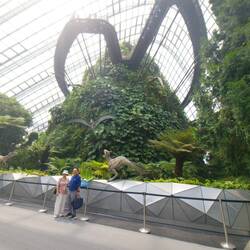 Ist ein Teil der Gärten, ein tropischer Nebelwald mit einer beeindruckenden Pflanzenwelt und einem Wasserfall, Neben den Pflanzen verbrigt sixh die Dinosaurier- Ausstellung mit lebensgroßen Animationen von beispielsweise Tyrannosarurus rex.