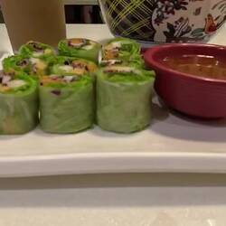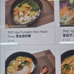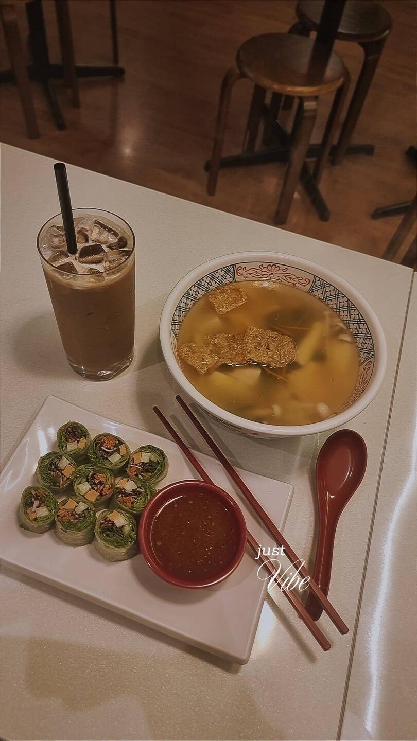 Dort bestellte ich Healthy Veggi Rolls, Vegetarische Pumpkin Mee Hoon Kway und einen Ice Cappuccino.