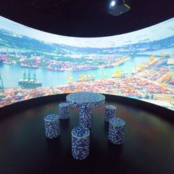 Bevor es in eine Gondel ging, konnte man durch Animation in die Geschichte Singapurs eintauchen.