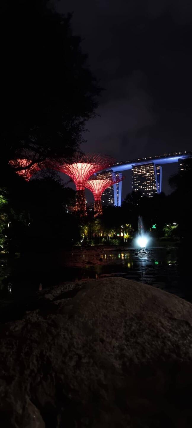 Es wurde dunkel und die Musik spielte ab. Die Supertrees wurden passend zur Musik beleuchtet, sie leuchteten Mal in blau🔵, lila🟣, grün🟢, rot🔴 oder gemischt🏳️‍🌈. Es war sehr schön. 🥰🥰