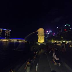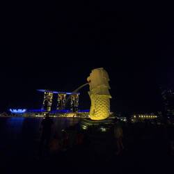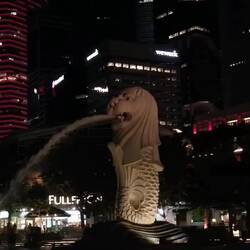 Ist das Wahrzeichen und Symbol Singapurs, eine mythologische Kreatur mit dem Kopf eines Löwen und dem Körper eines Fisches. Die Statue ist 8,60 Meter hoch, wiegt 70 Tonnen und dient auch als Brunnen.