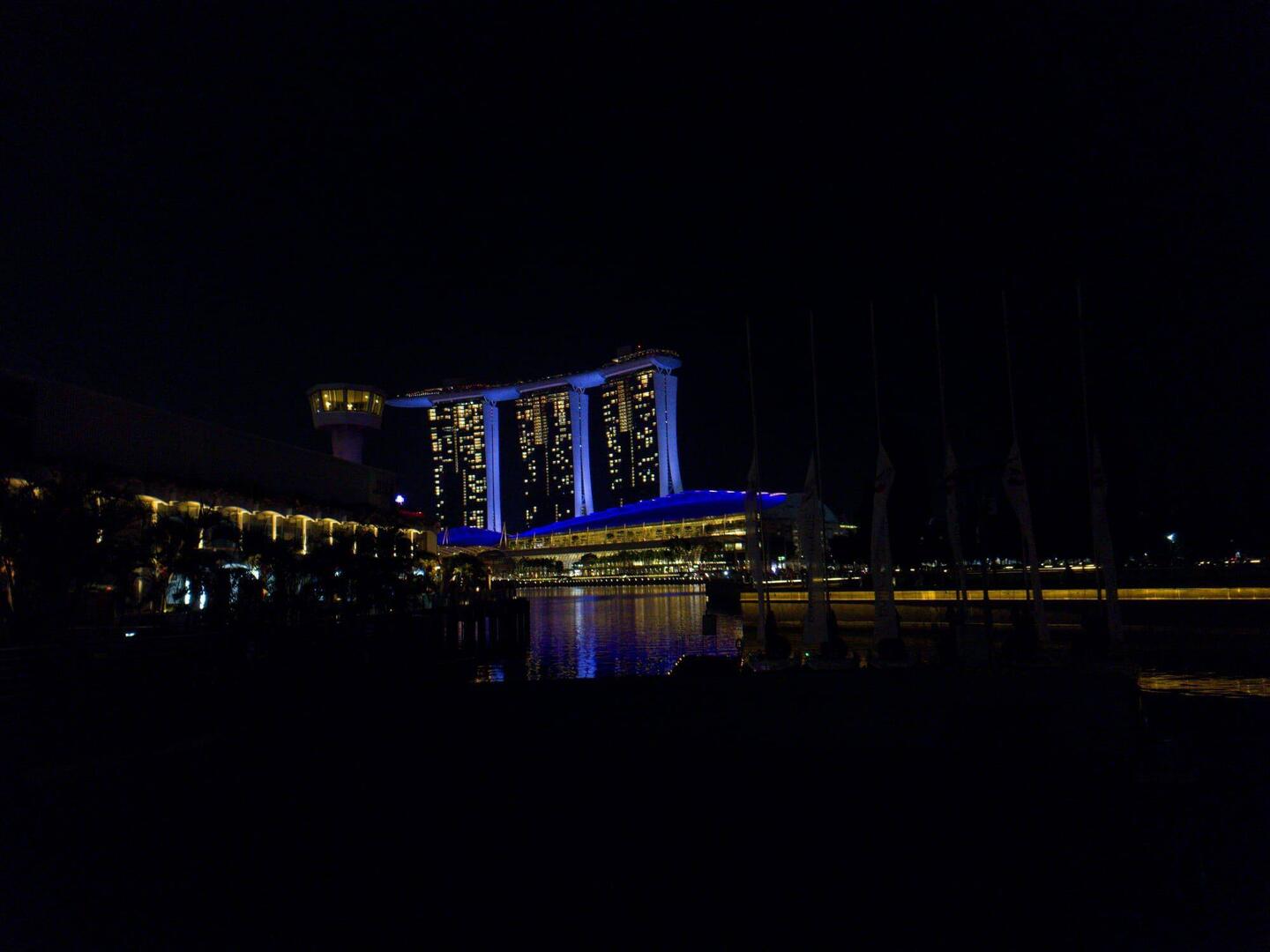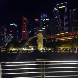 Mein weiterer nächtlicher Spaziergang führte mich einmal um das Wasser, entlang an der Waterfront Promenade, zum Merlion Park, wo ich die Merlion Statue, dem berühmten Brunnen von Singapur, anschauen konnte.