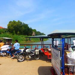 Auf der Fahrt wurden Stopps gemacht zum Mittagessen oder Obst kaufen, auch auf den Fähren über den Mekong konnte man aussteigen. Ein Hühnertransporter auf dem die lebenden Hühner wie eine Fuhreもっと詳しく