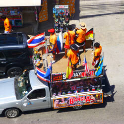Box-Promotion: Wenn abends ein Kampf im Thaiboxen ansteht, fahren diese Werbefahrzeuge durch die Stadt mit Höllenlärm aus den Lautsprechern. Die Tickets sind mit ca. 40.- € relativ teuer wenn man weiß, dass z.B. ein Hotel-Zimmermädel ca. 400.- € im Monat verdient.