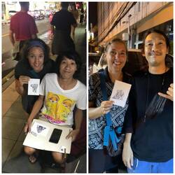 Abends nehmen wir uns ein TukTuk um zur Khao San Road. Essen und schlendern. 2019 habe ich bei einem Straßenhändler eine kleine Zeichnung erworben und siehe da - der selbe Händler und er hat sich gefreut.Baca lagi