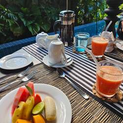 Das singhalesische Frühstück wird um 7:30 Uhr gereicht. Früher geht es nicht, da weder Personal noch Lebensmittel vorhanden sind. Wir sind die einzigenRead more