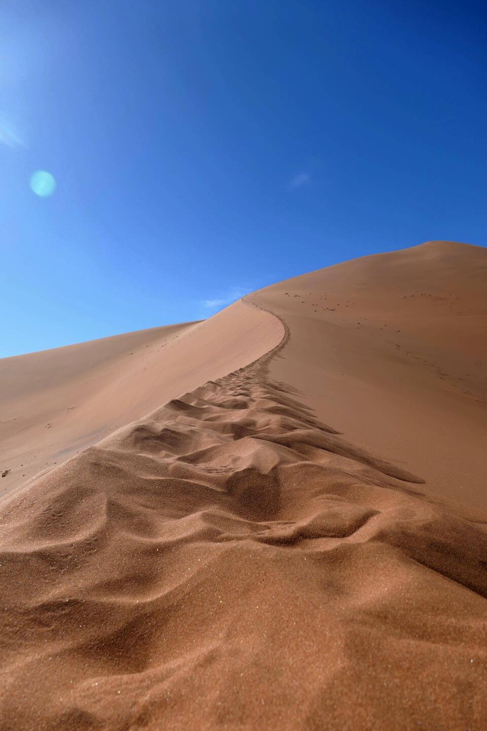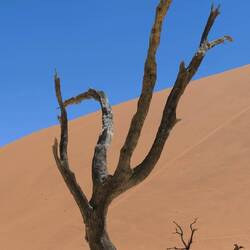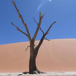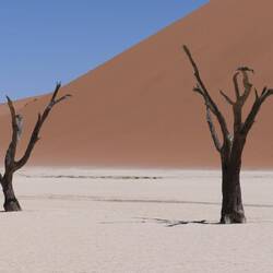 Nicht alle besteigen die Düne. Einige nehmen eine vermeintlich leichte Abkürzung ins Deadvlei ... durch extrem weichen Sand ohne getretene Spur. Wir kommen mehr oder weniger zum selben Zeitpunkt imRead more