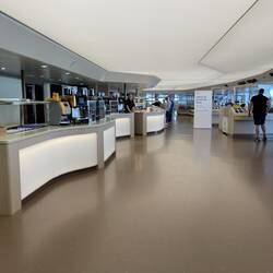 Im Laden für Vogelfreunde probieren wir Falthocker und sündhaft teure Ferngläser aus.