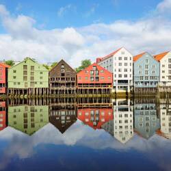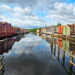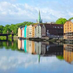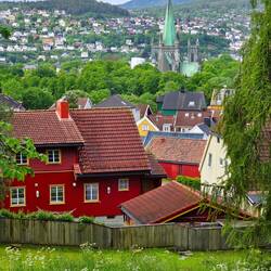 Semble-t-il qu'en Norvège, il faut pouvoir affronter les quatre saisons en une seule journée. Notre arrivée à Trondheim est marquée par les nuages et la pluie. J'avais booké une excursion pour faire une bucolique randonnée dans les hauteurs des montagnes entourant la ville. La météo, qui n'est pas de notre côté, nous pousse à annuler. Pourquoi aller se faire mouiller et voir de la brume?