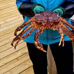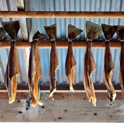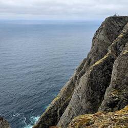 Après une visite d'un village de pêcheurs pour admirer le poisson séché à l'air libre et une rencontre avec un crabe royal qui vit dans une piscine hors terre, on nous laisse lousses pendant une heure pour arpenter le cap nord. La force du vent est indescriptible. On peine à rester dehors assez longtemps pour prendre quelques clichés, puis on doit rentrer se réchauffer. Du haut de la falaise, je me dis que c'est quand même toute une campagne marketing que d'amener des gens jusqu'ici sous prétexte qu'ils n'iront jamais plus au nord. De retour dans le bus, une collation de renne jerky nous attend. La guide commente au micro mon visage quand je croque dedans. Ce n'est pas pour tout le monde comme elle dit. Certainement pas pour moi.