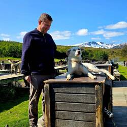 Après avoir fait le plein de beauté, c'est le temps de "recharger nos batteries" comme le dit notrel Danny Verveine de guide. Sur fond de flûte amérindienne, nous filons sans un mot vers le chenil de chiens husky pour une séance de câlins intensive. Dès mon arrivée, parmi environ 200 chiens, je repère Sombre qui est la plus gentille husky du monde. Je la flatte autour des oreilles et elle en redemande. Calme, douce, elle ne m'inspire aucune peur, alors qu'on nous a avertis que les chiens pouvaient devenir agressifs, entre eux, mais aussi parfois envers les humains. De toute évidence, je ne suis pas le seul à détester le guide. Les chiens se mettent à japper autour de lui, ce que provoque un moment de panique chez tous les chiens du chenil. Mais pas ma Sombre. Elle en a vu d'autre.