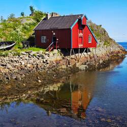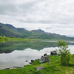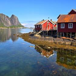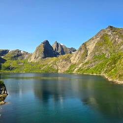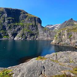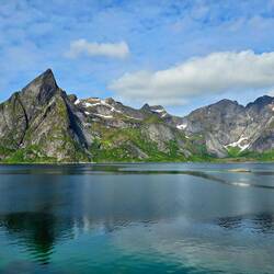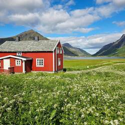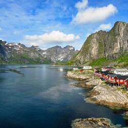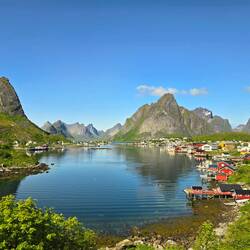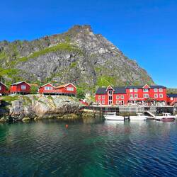 Les îles Lofoten sont un archipel norvégien situé au nord du cercle polaire. Des ponts et des tunnels relient les îles entre elles. Les nuages de l'avant-midi se dissipent et nous avons un temps splendide encore aujourd'hui.