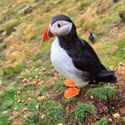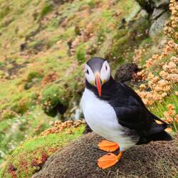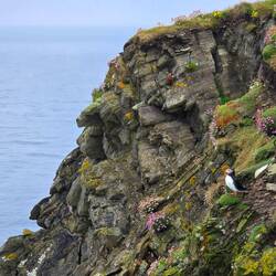 Le monde est petit. Sur 2 666 passagers, nous sommes 5 québécois à avoir choisi le même tour privé. On prend donc la route avec Theo, notre jeune et sympathique guide jusqu'au sud de Shetland. Un rocher sur lequel repose un phare est le refuge de plusieurs espèces d'oiseaux, mais une seule nous intéresse : les puffins (ou macareux). Theo, adepte d'ornithologie, scrute les rochers pour nous trouver un puffin, souvent ils se tiennent tout en haut, prêts pour la pose. Nous en verrons quelques-uns, mes premiers à vie!