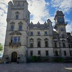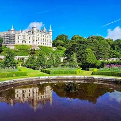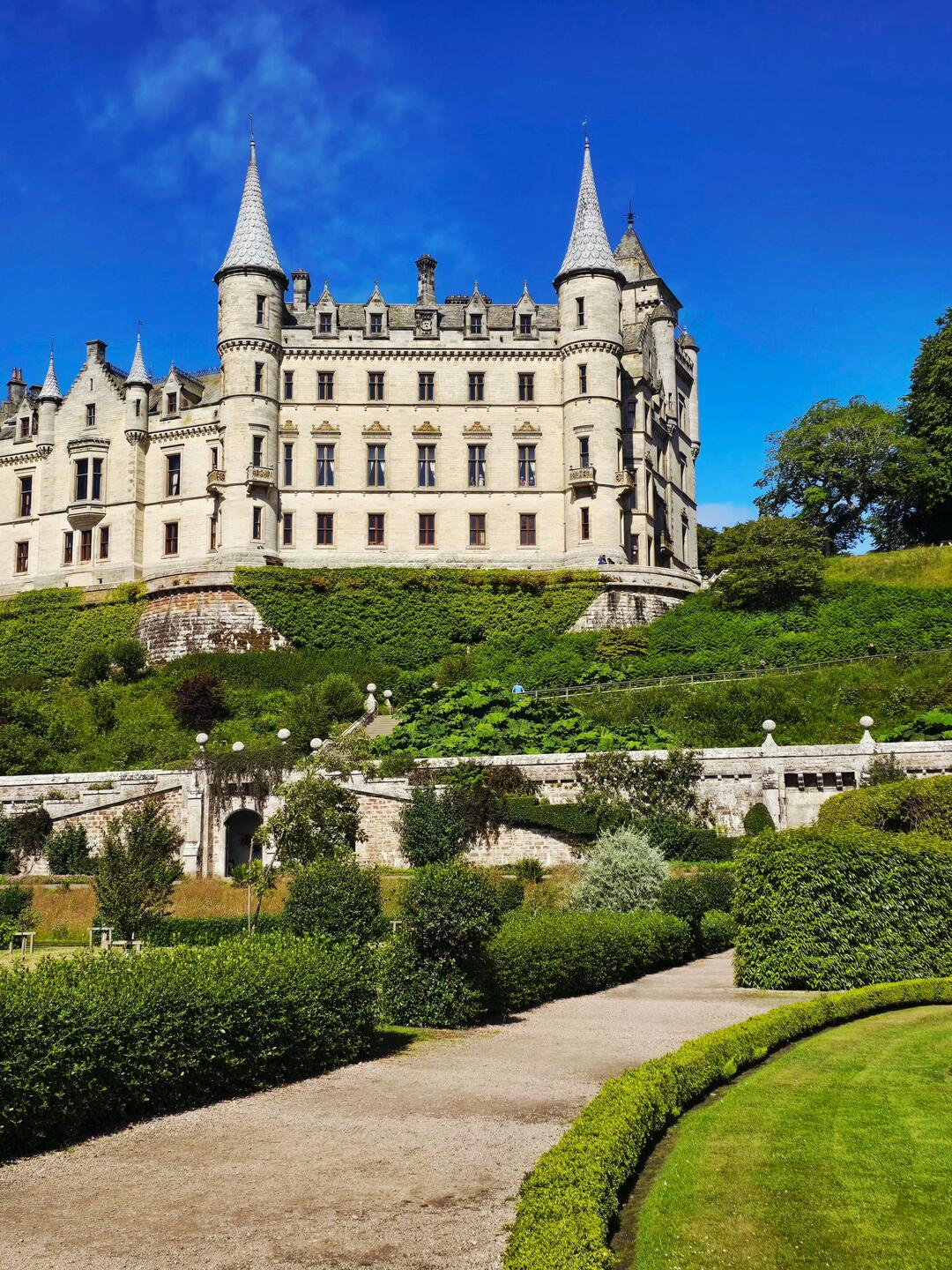 Siège du clan des Sutherland, le château Dunrobin a été rebâti par le même architecte que le palais de Westminster (ou le parlement et le Big Ben) à Londres, Sir Charles Barry. On a l'impression d'être soudainement transportés en France. Les jardins, en pleine floraison, sont magnifiques.