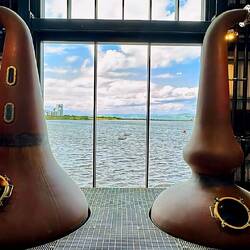 Quand j'ai réservé la visite à la distillerie Port of Leith, je n'avais pas réalisé qu'elle n'existe que depuis 1 an...et que ça prend 3 ans minimum pour produire un scotch. Nous sommes donc surpris en faisant le tour de la boutique en voyant du gin, du sherry, du porto et même du Champagne. Mais aucun whisky de la maison pour des raisons maintenant évidentes. On se dit qu'on commence à comprendre comment on fait du whisky et que ça sera notre dernière visite, sauf pour déguster. À la fin, on goûte deux whisky non maturés (comme boire de l'alcool pur), un sherry, un porto et leur whisky le plus abouti, mais pas prêt. Bref, une visite un peu étrange et, pour ajouter à l'illogisme, on rapporte leur Champagne produit par des amis en France!