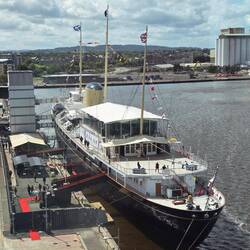 Édimbourg n'est certainement pas une ville portuaire. Le bateau s'ancre donc assez loin dans la baie à Queensferry. Un tender nous mène sur le quai, puis des bus nous conduisent en ville. Le tout prend environ 45 minutes. Nous avons déjà visité Édimbourg en 2023, donc j'ai prévu de voir ce que nous avions omis il y a deux ans. Le trajet jusqu'au centre m'a donné une envie de pipi terrible. Je suis prêt à me soulager en plein St. Andrew Square s'il le faut, mais heureusement, le Harvey Nichols est ouvert. Maintenant que je peux penser à autre chose, on prend le tram jusqu'à Ocean Terminal, à Leith, où le célèbre Britannia est amarré. Le dernier yacht de la famille royale britannique a offert 44 ans de loyaux services avant d'être transformé en musée, ses 60 millions de livres d'entretien annuel devenait une charge un peu trop lourde. C'est curieusement une des attractions les plus populaires du Royaume-Uni, mais dans mon cas, les goûts en matière de déco de la défunte Reine Elizabeth II ne m'impressionnent pas tant. C'est exigu et les gens s'agglutinent tous aux mêmes endroits, ce qui ne rend pas la visite agréable avant d'enfin atteindre des salons un peu plus imposants.