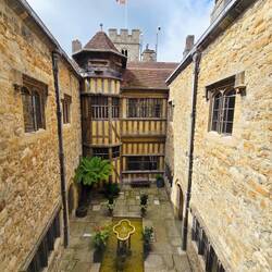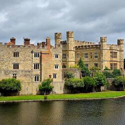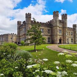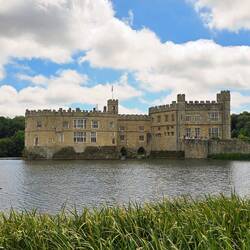 Les nuages se sont donnés rendez-vous au-dessus du château de Leeds, mais le temps s'éclaircit de plus en plus, et il fait chaud. L'immense terrain et la douve qui ceinture le château en font un lieu magnifique où les canards et les cygnes nagent en toute insouciance dans les nombreux étendus d'eau. On se croirait dans Downton Abbey