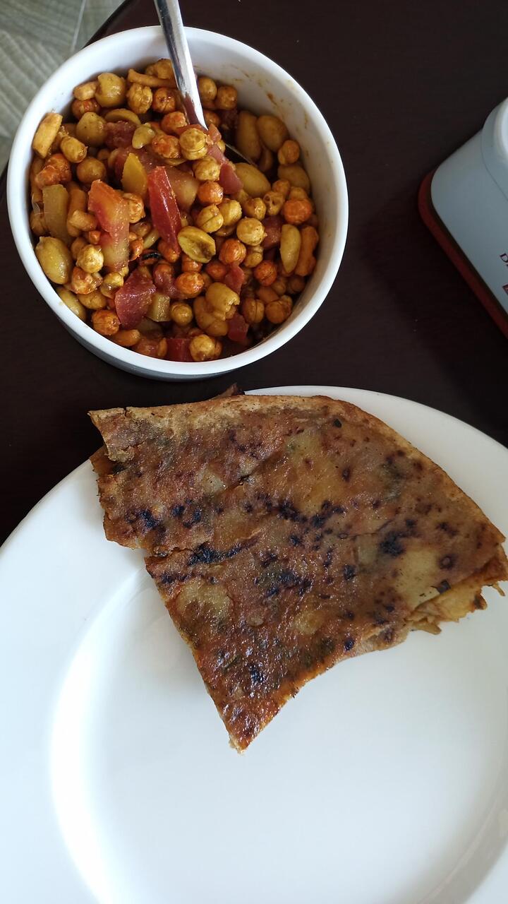 After a jog in town we came back for breakfast to have chana/peanuts salad and freshly made Aloo parathas