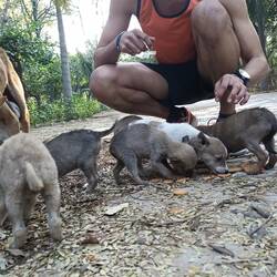 7 puppies and their mum were craving for food as we crossed them on our running path. So we just got back home and came back with a good supply of Parle-G cookies for all the dog family, permanentEn savoir plus