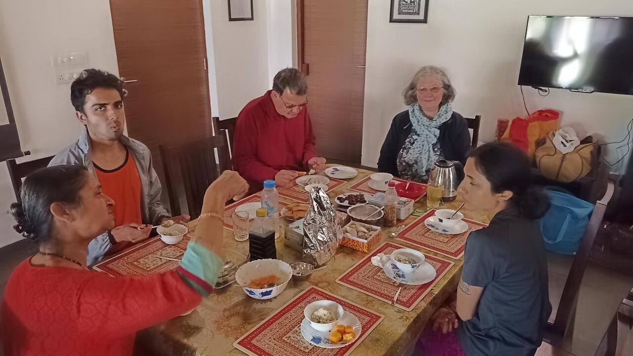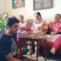 Climbing to the 10th floor of a building in Ahmedabad to meet the former Dean of IIM in his house and to share Bajan songs with about 20 other family members and friends. What a nice communityLeggi altro