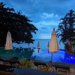 Deshalb verbrachte ich viel Zeit in unserem kleinen privaten Bereich. Während Alex am Strand entlang spazierte, holte ich ein wenig Schlaf nach. Dann ließ ich mich massieren und wir sprangen tatsächlich nochmal ins Meer, wobei ich von oben schon Krabben entdeckte und es mich große Überwindung kostete. Später waren wir noch in unserem kleinen Pool und weil der so schattig ist, noch im Großen.