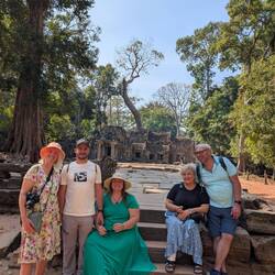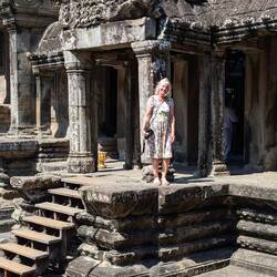 Anschließend ging es weiter zum Ta Prohm, besser bekannt als der Tomb Raider Tempel. Hier wurden Szenen für den gleichnamigen Film gedreht, und es ist leicht zu sehen, warum dieser Ort so berühmt ist. Der Tempel ist mein absoluter Favorit. Die Natur holt sich hier alles zurück: riesige Baumwurzeln überwuchern die Tempelruinen, und die Atmosphäre ist einzigartig. Besonders faszinierend waren die riesigen Doppelhornvögel, die wir hier sahen. Unser Guide erzählte, dass die Vögel ihre Eier in Baumhöhlen ablegen und die Mutter bei den Jungvögeln bleibt, während der Vater sie mit Nahrung versorgt.