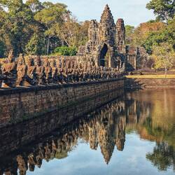 Angkor Wat war ursprünglich eine Stadt und Tempelanlage, erbaut im frühen 12. Jahrhundert unter König Suryavarman II. Sie war nicht nur ein religiöses Zentrum, sondern auch eine politisch und kulturell bedeutende Hauptstadt des Khmer-Reichs. Die gesamte Anlage ist eines der größten religiösen Bauwerke der Welt, ursprünglich dem Hindu-Gott Vishnu gewidmet, später dann buddhistisch geprägt. Die Architektur ist ein Meisterwerk, mit präzisen Schnitzereien und einer symbolischen Struktur, die den Berg Meru, das Zentrum des Universums, darstellen soll.