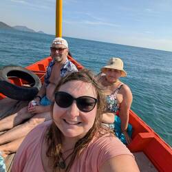 Nach dem Frühstück ging es los. Zwei Tuk-Tuks brachten uns zum Pier, von wo aus wir mit einem Boot zu den Inseln aufbrachen. Ursprünglich hatten wir Koh Tonsay im Sinn, aber uns wurde erklärt, dass dort nicht mehr geschnorchelt werden kann, da der Bau eines Resorts die Riffe zerstört hat. Traurig, aber wir hofften auf andere schöne Spots.