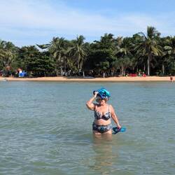 Auf Koh Po, einer kleinen Insel mit etwa 30 Familien, machten wir eine längere Pause. Die Sonne schien, das Meer glitzerte – perfekte Bedingungen. Leider brannte sich diese Sonne auch ziemlich in meine Haut, trotz Sonnencreme und allem möglichen Zudecken. Während der Pause wurde gegrillt, und das Essen war wirklich gut. Es war sogar das erste Mal, dass bei einem Schnorchelausflug das Essen sowohl ausreichend als auch lecker war. Ein kleines Highlight!