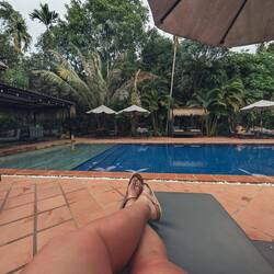 Zurück im Hotel sprangen wir noch in den Pool, um uns weiter abzukühlen. Dabei versorgten wir meinen Sonnenbrand und ein paar Quallenstiche (ja, ich hatte auch das Glück, ein bisschen Kontakt mit den Tierchen zu haben). Der Tag endete mit einem Abendessen und einer Runde Skyjo. Ausnahmsweise habe ich sogar einmal gewonnen, was den Tag doch noch ein kleines bisschen besser gemacht hat. 🥳