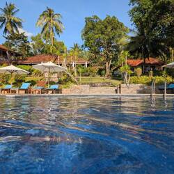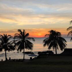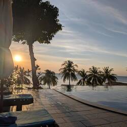 Am Ziel angekommen, nahmen wir ein Taxi, das uns in einer halben Stunde zu unserem Hotel brachte. Und was für ein Hotel! Es ist wirklich traumhaft: ein großer Pool mit Blick auf den Strand und das Meer. Der Pool ist angenehm warm, und wir verbrachten den restlichen Tag damit, uns dort zu entspannen, auszuruhen und den Sonnenuntergang zu beobachten. Der Sonnenuntergang war im Übrigen spektakulär.