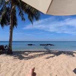 Den gesamten Vormittag und Mittag verbrachten wir nach dem Frühstück am Strand. Unser Hotel hat einen kleinen Privatstrand, was wirklich schön ist. Alex und ich wollten Kajak fahren, aber nach ein paar Metern bekam ich Krämpfe in den Oberschenkeln, weil die Sitzposition unglaublich unbequem war. Wir mussten umkehren, und Alex paddelte dann alleine eine Weile herum. Ich nutzte die Zeit, um mein achtes Buch dieses Jahr weiterzulesen, und ging ein bisschen schwimmen.