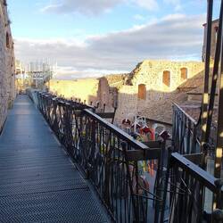 Die Überreste eines alten Schlosses, gepaart mit moderner Kunst, ist ausgebaut zu eine Begegnungsstätte für Konzerte. Es geht über eine Wendeltreppe hinauf zum 360° Ausblick, traumhafte Weite.Читать далее