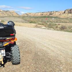 Heute durchfuhren wir die Bardenas Reales, diese liegen in der autonomen Gemeinschaft Navarra. Es handelt sich um eine Halbwüste die es nur auf einer 30 km Schotterpiste zu durchqueren erlaubt ist.