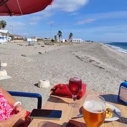 Örtchen zwischen Plastikplantagen, das kleine Chiringuito direkt am Strand lädt zu einem Stop ein. Ein Gläschen 🍷🍺 und ein Tapa 🍤🍅
