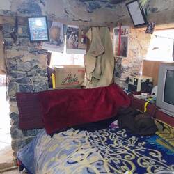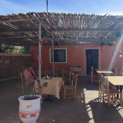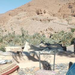 Am Ende des Tales der Palmen, 🌴🌴🌴befindet sich dieses Berber Café ☕. Der Besitzer zeigt mir seine ganze Wohnung und ich trinke eine Cola🥃. Er besitzt einen Pfau 🦚 und einen EselBaca selengkapnya