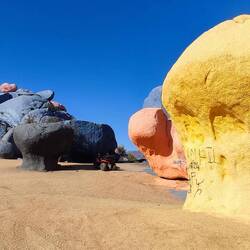 Inmitten eines Granitchaos, nur wenige Km von Tafraout entfernt, fand der belgische Künstler Jean Vérame 1985 die Inspiration für sein spektakuläres Kunstwerk. MitBaca selengkapnya
