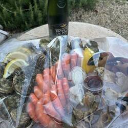 Der Tag heute ist verregnet 🌧️💧und so nehmen wir heute noch die Gelegenheit zum Kauf von 12 Austern 🦪. Hm...diese gibt es zum Abendessen mit einem Glas Weißwein 🍷