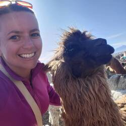 We started with breakfast at our hotel before leaving around 7.30am to make a quick stop at a house where we got to pat llamas.