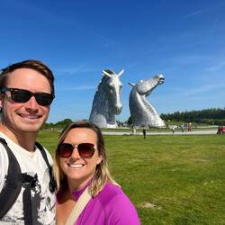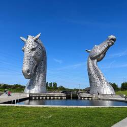 Cara took us to our first stop - the Kelpies. These are large sculptures of two horses which stand at around 40m high. They are very impressive! They were created as a tribute to commemorate the Clydstale (???????) horses which are the world's strongest horses and they played a huge role in Scotland's industrial revolution in the 1800s. They are called kelpies because kelpies are the name of Scottish mythical creatures which in the water look like eels but when they are not in the water, they look like large white horses (like the statues).