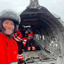 An hour later, it was time for quad biking! We met our tour guide, were shown how to use the bikes (not that we really needed the brakes!) and were off! We definitely tested the meaning of ‘All Terrain Vehicle’ as we drive across gravel, grass, sand, paved roads and even some river crossings, all whilst hitting a top speed of around 70kmph. We made a few stops along the way including a plane wreck on a black sand beach which has been there since the 1970s, with the plane being built/used around the time of WWII (it was a US Air Force plane - the US have a base in Iceland). Our guide also taught us a bit about living in Iceland and his adventures across Iceland (he was born and bred in Iceland and he says although many Icelandic people leave at some point, they always come back!) After all our adventures and lots of fun, we then made our way back to the tour office and headed off to camp.
