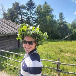 We then attempted (and succeeded!) to tie our own wreaths - another tradition of Midsummer. Gab’s was quite delicate (not as many leaves) whilst Daniel’s was very heavy (many leaves)! We then of course wore these for the rest of the day!
