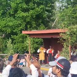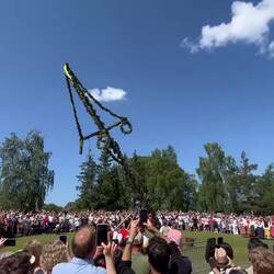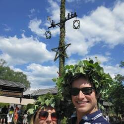 We then went to the traditional start of Midsummer celebrations, the raising of the Maypole at 11am! We cheered on the folk dancers as they raised the pole (which happened in a number of steps by pullibg ropes up the pole) and then joined in the dancing around the pole, which included some very interesting dance moves! We were pretending to be frogs and other animals and even did dancing involving laundry and other house chores and skipping home from church! We had so much fun and picked up the moves quickly in a big mosh pit around the maypole.