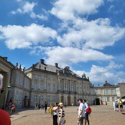 During the walking hour, we visited a number of nice squares and buildings in Copenhagen including Christianborg which was a palace built for the royal family but they didn't want to use it so it is today used as the Parliament house. We also saw many students wearing particular caps which looked like sailor hats and riding around in trucks playing music loudly and drinking as we walked around. We even saw some of them jumping in the fountains! This is a Danish tradition for when students graduate high school and the trucks drive them around to each family of the families, having drinks all day and night!